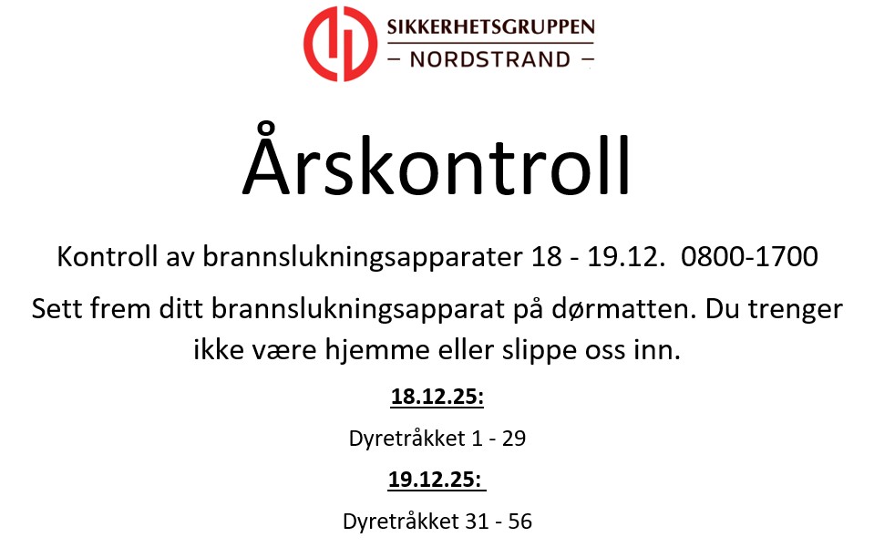 Kontroll av brannslukningsapparater 18.12 og 19.12